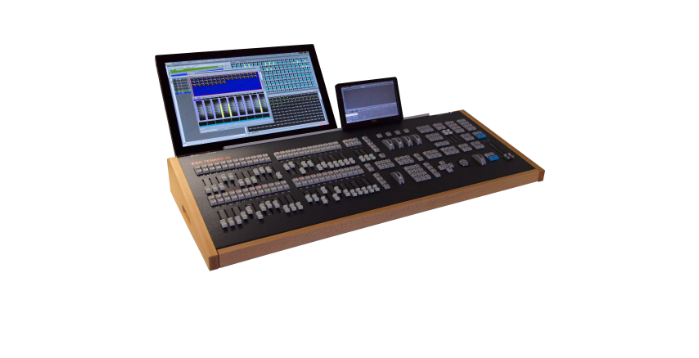 MAKI II has many advanced lighting control interfaces. These include: an illuminated intensity or rate wheel, four illuminated attribute wheels, and a detachable 10'' touch screen. Further controls are: a dedicated crossfader with GO button, a numeric keypad, dedicated function keys, and 24 submasters.